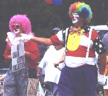 Fourth of July Parade ClownsThis pair of clowns was just one of many individual marching groups that joined in the parade, which is open to anyone who wants to decorate themselves or their bikes or their wagons or their floats -- even their baby's stroller. |